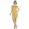 Take it back to the roaring twenties with this 20s Gold Flapper Womens Costume. This stunning dress captures the essence of the 1920s with its gold fringe details. Also included are gold elbow-length gloves and a gold sequined headband with a feather accent. Perfect for Gatsby-themed events, decades themed parties, or any occasion where you want to do the Charleston in style. Complete the look with other 1920s accessories from our range.