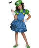 She'll be winning all the races in this Super Mario Brothers Luigi Girls Costume. The cute costume features a blue dress with an attached green shirt and yellow buttons. A green cap, a pair of white glovelettes and a moustache on a stick are also included to complete the video gaming look.