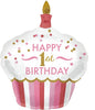 SuperShape Holographic 1st Birthday Cupcake Girl Balloon