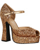70s Tan Daisy Chunky Heel With Ankle Strap Premium Womens Shoes