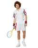 Serve up a storm at your next event with this 80s Tennis Player Mens Costume. Inspired by the legendary John Mcenroe of the 80s, this costume has everything needed to be a world class player. Included is a headband, polo, shorts and two sweatbands, all you'll need to make your heroic presence felt. Get ready to take centre court, this ones going to heat up quick! Perfect for Costume parties, Sports parties and much more.