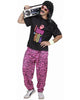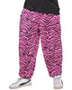 These 80s Pink Zebra Baggy Pants will give you instant cool factor and undeniable funk. These baggy pants feature a vibrant pink zebra print that's all about wild style and retro rebellion. Designed with an elastic waistband for a comfortable fit that lets you bust a move, shred on air guitar, or just chill with maximum swag. Perfect for making a bold statement at any 80s or 90s party, dominating the dance floor, or simply injecting a huge dose of fun and funky flair into your everyday look.