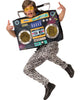 Rock out to some tunes dressed in this Boombox Adult Costume. This awesome costume features a black tunic, in the shape of a large boombox. On the front of the costume are colourful printed images of features you'd find on a boombox, such as round speakers, buttons, dials, a cassette and a tuner. There is a silver handle that sits behind your head. Pair this costume with loud and bright 80s accessories from our range.