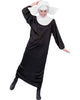 You'll be the girl on fire when you wear our Smokin Salem Witch Womens Costume. Featuring a long ankle length black dress with a long white collar and red and black singed highlights! Worn with the included white apron with matching dark red and black flames and the message burn in the witch in blood red writing! A subtle reference to the Salem witch trials. The costume of course also features a black witch's hat with a white belt! Maybe stay away from Salem!