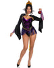 Reign with sinister beauty in this Poison Apple Queen Womens Costume. This magnificent black bodysuit, designed to make you look amazing, features captivating brocade detailing across the bodice and an iridescent skirt that shimmers with dark enchantment. The ensemble is completed with a dramatic black shrug that boasts a high, structured collar, and a coordinating gold-toned belt that cinches the waist for a powerful silhouette. With its intricate details and commanding presence, this costume is ideal for making a grand entrance and is suitable for both solo villainy or coordinated group themes. Pair this formidable costume with a glistening mock poisoned apple to complete your wicked transformation. Ideal for Halloween parties, themed events, or dark fairytale cosplay.
