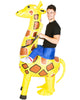 You'll love our Giraffe Inflatable Adult Costume for your Halloween party. Featuring a giant yellow giraffe inflatable with brown spots, reins, and attached blue inflatable legs wrapped around the neck. Simply step your legs through the inflatables hind legs and turn on the fan to inflate.