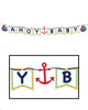 Decorate your baby shower with this great Ahoy Matey Ahoy Baby Ribbon Banner. Banner features the text 'Ahoy Baby' separated by a red anchor with a sailboat on each end. The navy blue text is on a white backgorund with a yellow border and white polka dots. Banner measures 5.5" x 5.5ft. / 14cm x 1.67m. Complete your decorations with our range of Ahoy Matey Party Supplies.