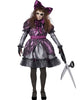 Satisfy your sweet tooth this Halloween with this Sweet As Candy Corn Witch Womens Costume. The costume is a stunning black and orange dress with orange sequin accents, a corset style top with candy corn printed panels, and a black wet-look skirt with an orange overskirt featuring spider web detail. Finish off the costume with the included black conical witch hat and the additional matching puff sleeves. Add some shoes, a broom and cauldron and you'll be ready for Halloween.