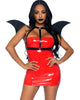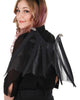 Add some edge to your Halloween, festival, or gothic outfit and strap this Faux Black Leather Bat Wing Body Harness over your torso. This harness comes in a black soft faux leather with an open back design and silver ring accents. Attached at the back is a pair of black faux leather scalloped mini bat wings.