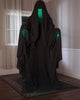 Your guests will think that their time has come when you display our Animated Hooded Phantom 1.7m (US PLUG). The life-sized animatronic is styled as a large faceless grim reaper wearing a flowing black robe with a large hood. When activated the phantom, illuminates a ghoustly green colour from under the hood and from its sleeves. The prop also rocks side to side while repeating 3 different phrases. The animated prop comes with a step-here pad, an infra-red activation sensor that works up to 2m away, a firm base to keep the prop secured and volume control so you can adjust the sound omitted according to the surroundings. Indoor or covered porch use only. I have come for your soul!