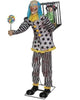 Your guests will be extremely scared with our Animated Mr Happy Prop (US PLUG) displayed at your Halloween party. The life-sized animatronic is styled as a large clown wearing a black white polka dot shirt with yellow and blood spatter accents, matching pants, black shoes, and sporting a very creepy grin with blue hair and blue eyebrows. In addition to holding a candy cane in one hand and a cage with a crying child in the other. When activated the creepy clown has piercing yellow eyes, the torso rocks side to side, has a moving draw that says 5 different phrases. The animated prop comes with a step-here pad, an infra-red activation sensor that works up to 2m away, and a firm base to keep the prop secured. Indoor or covered porch use only.