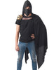 Finish off any assassin costume with this easy to wear Assassin Cape and Mask set. The set comes with a black off-shoulder cape with hood that drapes down one arm with an attached faux-leather strap that connects to a shoulder armour piece on the other side. Also included is a costume mask that sits across the mouth to conceal your identity. You certainly can't have anyone knowing who you are when you stalk in the shadows.