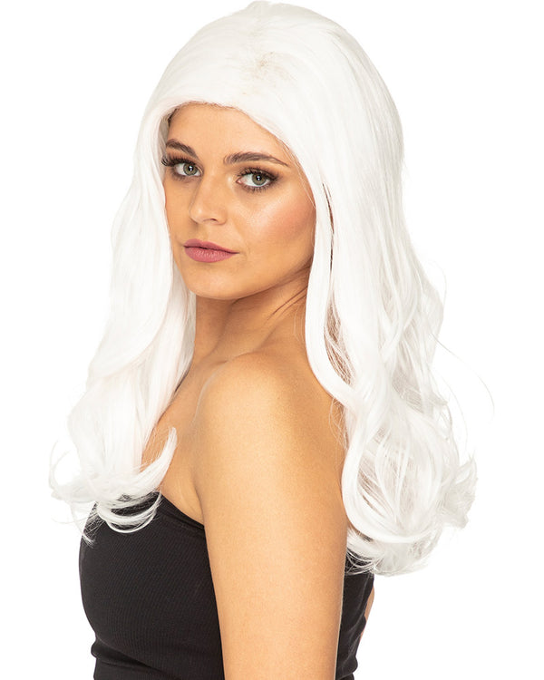Complete your bewitching outfit with our Glamour Deluxe White Long Wavy Wig. Featuring a pure white long wig with a part down the middle and large curls at the ends. Perfect if you just want see how you look with white hair or to cosplay as your favourite white-haired characters (witch or superhero). Great for fairy costumes, Mardi Gras, festivals and more. A bonus wig cap is included for added comfort and to keep your own hair under wraps.