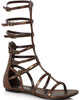 These stunning Bronze Zena Womens Shoes will have you looking like an empress or fierce gladiator in no time. These sandals are styled in the classic gladiator design with bronze braided straps running up the leg. Each strap has a buckle closure and the shoe is printed in a gold snake pattern. Perfect for Roman, gladiator, or historical costumes!