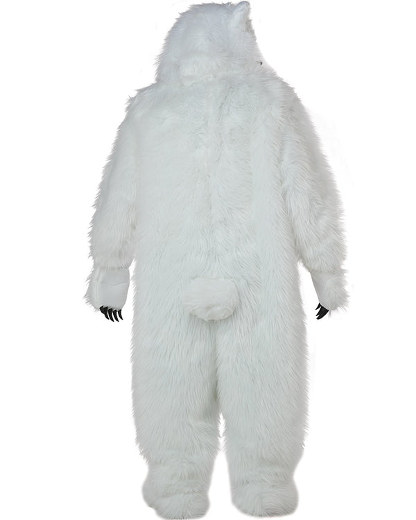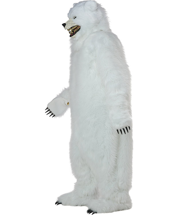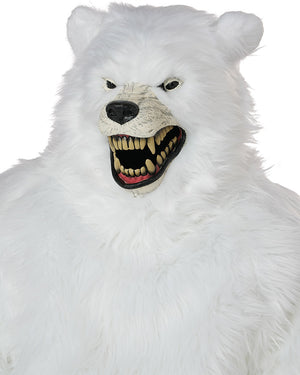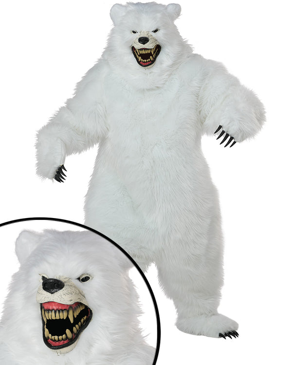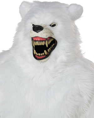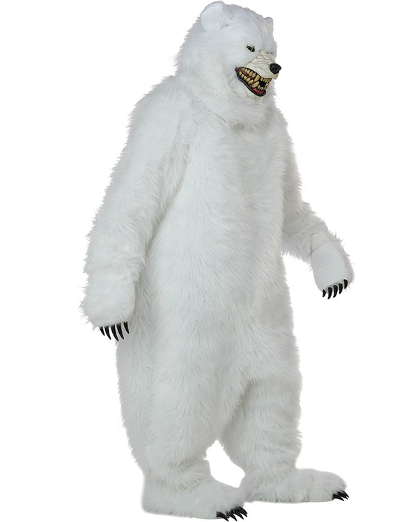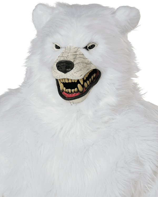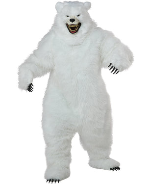 Command attention and instil a sense of Arctic awe with this Polar Bear White Deluxe Adult Costume. This menacing ensemble includes a loose white furry jumpsuit complete with realistic attached bear claws. The over-the-head polar bear mask features a moveable mouth, adding an extra layer of lifelike intimidation. Perfect for Halloween, animal-themed parties, or any event where you want to bring the fierce presence of the Arctic's top predator to life.