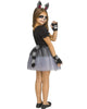 This Forest Friends Raccoon Tutu Detachable Tail Mitts and Headband Set is a quick and easy costume for your little one who has a love of forest animals. The set features a headband with two attached grey pointed ears and a row of small white and red flowers, an adorable black and grey tutu with a detachable tail around the back. There is a pair of black mitts with black and grey faux fur attached at the top and white toe pads on the bottom.