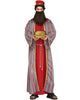 This stunning 3 Wise Men Red Adult Costume is perfect for dressing up this holiday season. The costume features a caftan made from soft materials and features a vibrant red striped robe with red inner that exudes confidence and boldness, as well as intricate gold trimming. The included cord belt is perfect for cinching in the waist to create a regal look, and the red and gold fez headpiece completes the outfit. This three wise men costume is perfect for any Christmas play or nativity scene, and is sure to make you feel like a true king. Red has traditionally been associated with passion, power, and energy, making it an excellent colour choice for this costume. It also symbolises the warmth and spirit of the holiday season, making it a great addition to any festive celebration. Add some extra flair to your Christmas celebrations with this amazing costume whether you're attending a party, performing in a play, or just looking to add some extra festivity to your holiday season.
