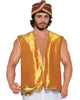 Conquer the desert sands in this Gold Sultan Vest. The vest is a beautiful gold colour made of satin-feel fabric with a slightly lighter gold trim around the edges.