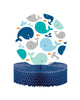 Decorate your Baby Shower with this gorgeous Lil Spout Blue Honeycomb Centrepiece. This cutout features a blue tissue base with a white round cardstock with cute whales. Combine with our range of Lil Spout Blue party supplies for an adorable Baby Shower celebration.