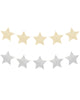This Gold and Silver Glitter Star Reversible Garland is perfect for decorating a number of different celebrations including birthdays, weddings and engagement parties. This garland features 15 reversible silver and gold glitter stars made of high quality thick glitter paper stock. Each star has 2 holes punched on either side for easy threading of string or ribbon (string included). Combine with our range of Gold Glitter and Silver Glitter Party Supplies for a beautifully coordinated look.