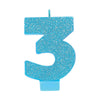 Candle Numeral Glitter Blue #3
