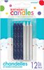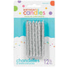 Candles Glitter & Metallic Silver & Blue 8cm Pack of 12