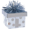 This Silver Dots Gift Box Shaped Balloon Weight is a fun and colourful way to keep your balloons grounded for any occassion. This balloon weight can hold up to 10 latex or 12 foil helium filled balloons. The balloon weight comes in the shape of a silver spotted gift box with tinsel to top it, so it can blend perfectly amongst a pile of presents instead of being an obvious eyesore. Use as a balloon weight, table decoration and more. Combine with our range of balloon accessories including balloon pumps, ribbon and, of course, balloons!
