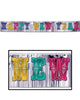 Make your party glisten and shine with this Metallic Happy New Year Banner. This banner is trimmed, with a silver back ground and metallic pink, yellow, turquoise and purple letters.