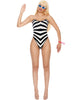 Step into the world of iconic, timeless elegance with our Genuine Doll Womens Costume. The centerpiece of this costume is the black and white striped vintage-inspired bodysuit. The contrasting stripes create a visually captivating look that is both playful and chic, simply slip into this bodysuit and instantly transport yourself to a world of dolls and plastic. To add a touch of authenticity, a pink "GENUINE DOLL" PVC snap bracelet is also included. This bracelet not only serves as a stylish accessory but also pays homage to the iconic dolls that have inspired generations. No vintage-inspired look is complete without the perfect accessories, so white cat eye sunglasses that exude retro flair and add a touch of glamour to your ensemble are also included. The gold metal hoop earrings add a subtle sparkle and complement the overall vintage aesthetic. These accessories effortlessly enhance your doll-like charm and elevate your style to new heights. Whether you're attending a themed party, reliving cherished memories, or simply expressing your love for all things Barbie, this costume is sure to captivate hearts and turn heads.