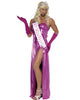 Live in a Barbie world when you wear this Barbie Bride Girls Costume. The costume features a satin dress with a white bodice featuring a large pink bow, three gold faux buttons and waistband featuring the famous Barbie logo written in gold sequins. The skirt of the dress is light pink satin material with glittery pattern embellishments and thick white hem. To complete the look, also included is a headpiece with a glittery silver veil and large pink bow and two pink shoe bows that clip onto your pair of shoes.