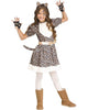 This Rose Gold Leopard Girls Costume is a dazzling ensemble that transforms any child into a majestic creature of the wild. This costume features a soft leopard print dress with charming puff sleeves and a playful tail, accented by a plush white chest inset and a sparkling bow belt. The ensemble is completed with leopard mitts and a headband adorned with leopard ears. Pair it with face paint for a complete wild look, ideal for costume parades or school performances.