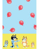 Set the scene for your Bluey themed party and cover the party table with this Bluey Paper Tablecover. This tablecover comes in blue and yellow and features an array of floating red balloons on the blue side and on the yellow side is Bluey and his friends having a dance. Perfect for your Bluey party, pair this tablecover with our range of Bluey party supplies.