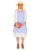 Step into a fairytale and let your words and imagination flow in this Green Gables Girl Deluxe Plus Size Womens Costume. This costume has been carefully designed by us here at CostumeBox and we ensure only the highest gold standard quality costumes. This costume has many key features, including a blue striped pinafore and a cute floral-print dress with rounded collar to wear underneath. Everything needed for you to become Ann of Green Gables. Also included is a hat that comes in a natural colour and features a folded/worn look to tie it all together, helping bring the look of this fairytale character to life. We've designed this costume for other ages and sizes too so you can be sure to find the right fit for you or your little one. Perfect for book week, dress up parties and much more.