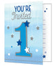 Invite all your guests in style with these adorable One Little Star Boy Invitations Pack of 8 with a number one design with stars.