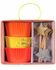 Decorate your cupcakes with this bright neon cupcake kit and top them with the sparkling gold and silver star cupcake toppers. The kit includes 48 cupcake cases in 4 different colours and 24 cupcake toppers in 2 different styles.