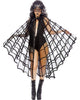 Spin a web of intrigue and style with this Velvet Flocked Web Cape With Satin Tie. Delicate velvet flocking forms a beautiful spiderweb pattern on sheer netted panels, creating a look that is both bewitching and irresistibly chic. A scalloped trim adds a final touch of elegant detail, while the black satin tie at the neck allows for a perfect, dramatic drape. Perfect for Halloween, themed parties, or simply for adding a touch of playful, sophisticated mystery to your look.