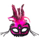 Doll yourself up for your next masquerade ball with this gorgeous Black and Pink Lace Feather Masquerade Mask. This gorgeous mask is made from hard moulded plastic and features pink satin with black lace trim and a plume of coloured feathers.