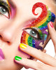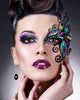 Add a splash of colour to your fancy dress costume with this Xotic Eyes Rainbow Half Mask. This half mask consists of rainbow coloured glitter swirly upper eye and under eye stick on makeup and is decorated with matching rinbow coloured rhinestones. Perfect for clown costumes and mardi gras celebrations.