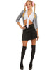 Nothing speaks the 90s than the hilarious 1995 teen flick Clueless. So dress in this Clueless Dionne Womens Costume, grab your flip phone and let's go shopping with your best friend Cher. This iconic costume is based off the outfit worn by Dionne and features a black and white plaid pattern blazer style jacket with black lapels and cuffs, a white top with attached red cardigan with a low v neck and four red buttons. A matching black and white plaid mini pleated skirt with silver faux safety pins on the front and it wouldn't be the 90s without a pair of black over the knee sock. It wouldn't be Dionne without her fashion headwear, which is why the costume also includes a white hat with black rim, a large ribbon on the front and a light pink fake rose. Channel your inner Dionne or any 90s high school girl as you flip your hair back and grab your bff as you enjoy the sun in sunny Beverly Hills.