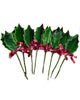 Decorate your home this festive season with this Christmas Holly Leaves Pack of 10. Included are 10 green holly leaves with red bows and long stems attached.