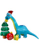 - Blue brachiosaurus next to Christmas tree nibbling star topper.