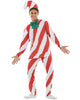 Unwrap a barrel of laughs this holiday season with this Candy Cane Mens Costume. This hilarious costume features a bold red and white candy cane striped top and matching striped pants, ensuring you look like a delicious walking decoration. A pointed red and white striped hat adds height, and the contrasting green bow tie completes your ensemble. The ultimate festive outfit guaranteed to be the sweetest (and funniest) sight at the Christmas party.