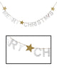 Proclaim a merry Christmas to your friends, family or neighbours with this glittering Merry Christmas Wooden Banner 1.4m. The banner features wooden letter cutouts that spell "Merry Christmas" covered in silver glitter, as well as being separated by gold glittering wooden star cutouts. Hang up across and wall, doorway, mantle or archway and embrace the Christmas cheer. Combine with our range of Christmas themed party supplies including tableware, Christmas swags, garlands, tree decor and more.