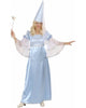 This Fairy Godmother Womens Costume is the essential attire for bringing true magic and elegance to any fairytale gathering. This elegant blue dress features a shimmering bodice and enchanting puff sleeves layered with sheer ruffle tulle and sequin trims, giving you an ethereal silhouette. A matching blue pointed hat with an attached tulle veil crowns your look, making you the most graceful guardian of dreams. Pair with a sparkling wand and glittering shoes for a truly magical look.