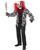 This Killer Carnival Clown Boys Costume is the ultimate outfit for a night of fright. The long-sleeve shirt is a chaotic mess of horror, with a solid black side splattered with blood and the other side in classic red and white stripes. Oozing blood print along the neckline and a tattered collar add to the gruesome look. The matching pants, with their tattered ankles, and a menacing 3/4 clown mask with wild red hair complete this nightmare-inducing ensemble. Your child will be the scariest clown at the carnival, ready to collect a bucket of screams this Halloween.