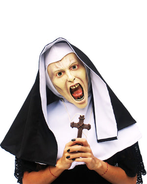 Mother Superior Nun Womens Costume, perfect for bringing an innocent fright to the occasion. The mother superior nun season is coming. Wear the amazing costume this halloween and surprise everyone. This costume is versatile, giving the wearer the option to give a fright with the mask, stay pretty without or swap between both looks! The featured mask has been hand crafted from 100% Biodegradable Latex, providing the features needed to bring the a scary nun look to life, whilst the featured Hood has been hand crafted from Polyester, keeping the caped nun look sweet and realistic, while also keeping the look stylish! Perfect for Costume parties, Halloween and much more!