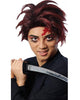 - Sits on one side of the face and is crafted and painted to look like half of a red devil's face with short horn and black painted facial detailing.