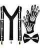 Finish off your suave skeleton suit with this Skelebones Suspenders Gloves and Bowtie Set. The set comes with a matching set of suspenders, gloves and bow tie with skeleton bones print so they're perfect for adding to a black suit to give it some Halloween flair.
