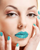 Add some bling to your lips and complete your costume with this Xotic Teal Kisses Lips Kit. This sparkly teal blue glitter and rhinestone costume makeup is the perfect way to add a unique touch to your fancy dress costume. Safe and easy to use all you have to do is peel, smile and stick on your lips. This product is reusable and waterproof so you can eat and drink in them.