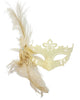 Show the event what the creamy dream is all about in this Masquerade Lace Cream Feathered Eye Mask. This eye mask has a strong cream lace design, making its aesthetic a unique one that people can't ignore. With the cream colour base and with a strong tall hanging feather beside it, this mask feels strong as well as elegant. Also featured is a silver jewel pinned on the feather, adding an extra touch of beauty. This mask fits comfortably over the eyes and secures around the back of the head with elastic. Perfect for Halloween parties and masquerade parties.